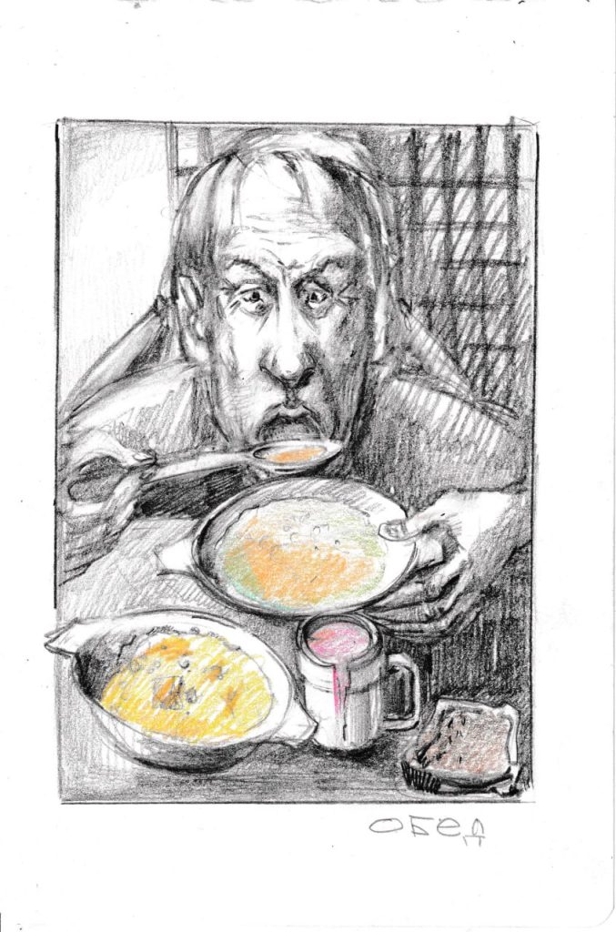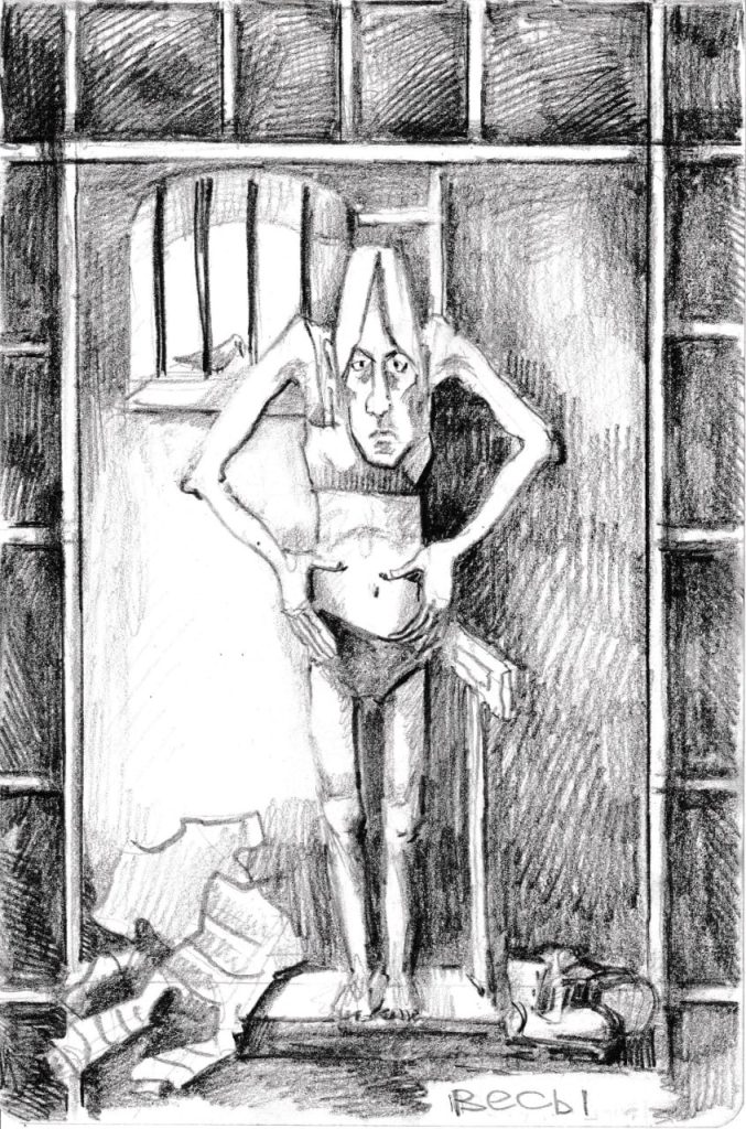 Александр — ювелир, в тюрьме работать не мог, сделал только несколько рисунков. А вот Анастасия начала рисовать чуть ли не с первого дня в тюрьме. Это страшная летопись страданий, боли и унижения.